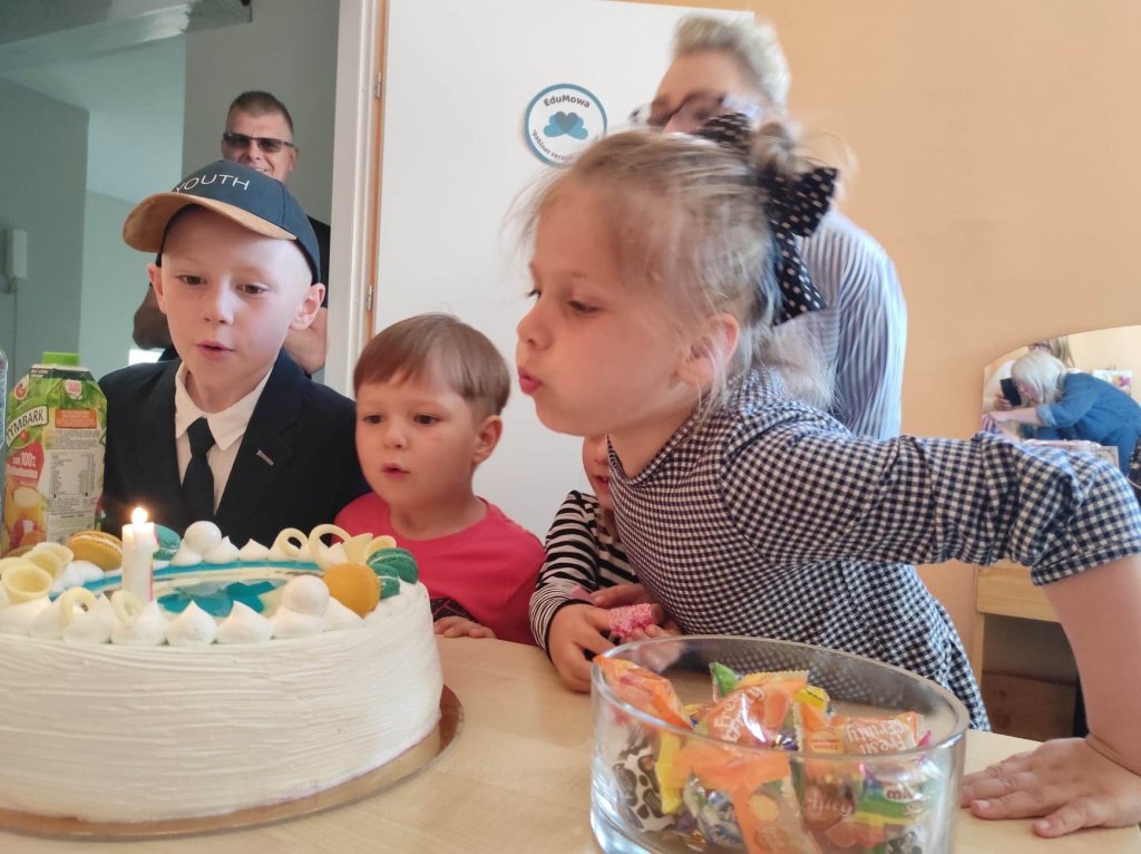 Kulminacyjnym momentem urodzinowej uroczystości było ogłoszenie wyników konkursu na logopedyczną rymowankę i wręczenie nagród dla wszystkich uczestników. Dziękujemy i gratulujemy Jagódko, Julko, Kubo, Nikodemie, Stasiu, Szymonie!